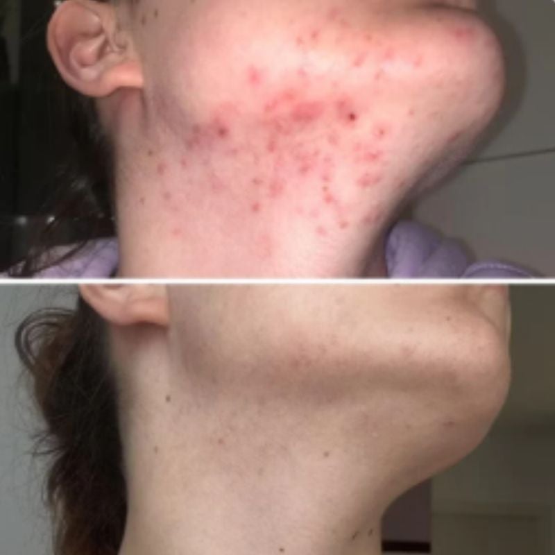 "Hat mein Leben verändert..." ".. und ja, das klingt dramatisch, aber so ist es! Ich habe jahrelang unter Akne gelitten, bin von Hautarzt zu Hautarzt getingelt, habe Produkte über Produkte ausprobiert, doch nichts hat langfristig geholfen. Und seitdem ich die Kapseln nehme, ist meine Haut ein Traum - klar, hier und da mal eine Rötung, aber Pickel sind verschwunden! Ich trau mich wieder ungeschminkt aus dem Haus und selbst vor meiner Periode kommt höchstens mal ein Pickel in der Kieferpartie.."