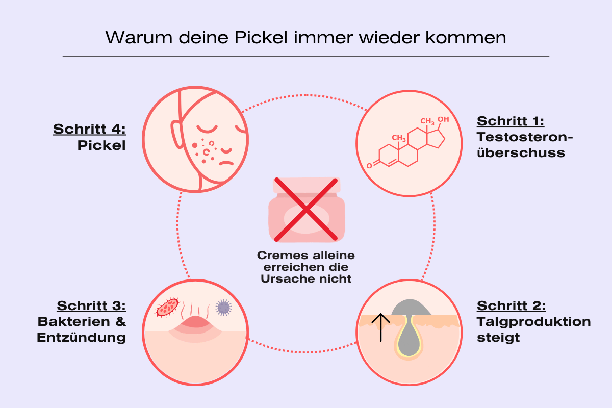 Wenn deine Pickel immer wieder dieselben Stellen befallen – Kinn, Kiefer, Hals – dann steckt dahinter ein Muster. Und dieses Muster entsteht nicht auf deiner Haut, sondern in deinem Hormonsystem.